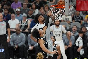 马刺榜眼秀哈珀因左小腿受伤,在第二节时伤退。