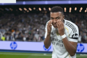 第11轮西甲联赛,皇马主场4-0大胜瓦伦西亚。比赛第19分钟,姆巴佩罚进点球,随后他对着摄像机做出用手在眼睛下方抹油彩的动作,并指着摄像机镜头。姆巴佩之所以在做出庆祝动作后指着摄像机,是把自己的这个进球献给一个11岁的患病男孩。