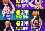 马尔卡宁52记三分居首,命中率40%;克尼佩尔49记第2,命中率40.5%;罗伊斯·奥尼尔43记第3,命中率41.3%;克里斯蒂42记第4,命中率40%。