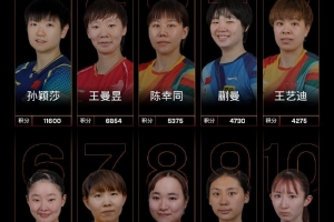 国际乒联最新世界排名:孙颖莎连续177周第一,王楚钦领跑男单